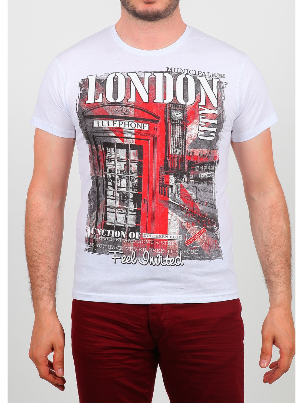 Erkek Tişört London Beyaz